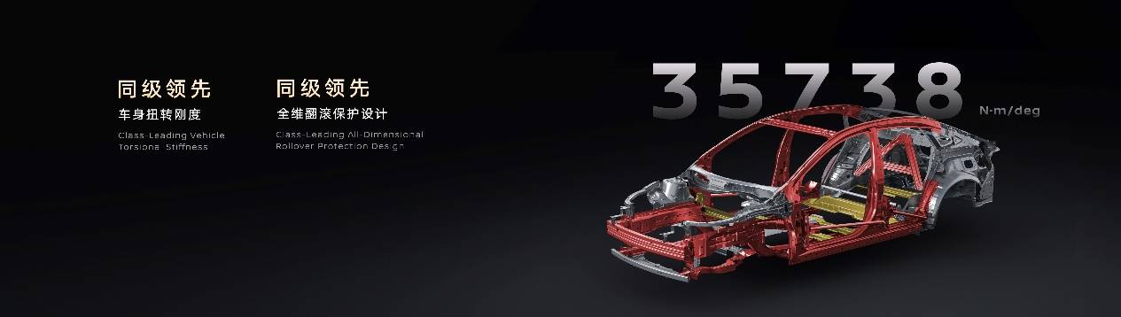 在被動安全方面,N6采用五橫十縱超安全籠式車身、豪華車同款后排超高強鋼A字型架構,車身扭轉剛度達35738牛米/度,筑就守護家人的“鋼鐵脊梁”。